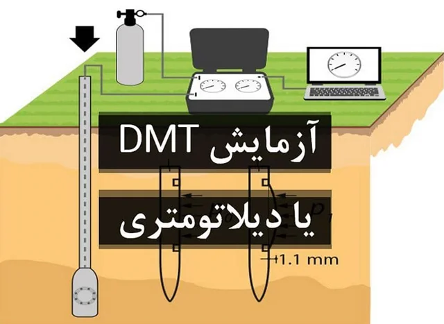 یکی دیگر از انواع آزمایشات برجا ،آزمایش دیلاتومتری و یا انبساط سنجی (DMT) است. این پروژه در قالب 24 اسلاید به بررسی این آزمایش می پردازد. دستگاه دیلاتومتر از تیغه فولادی ضد زنگ ساخته شده است که با سرعت متغییر در خاک فرو می رود.