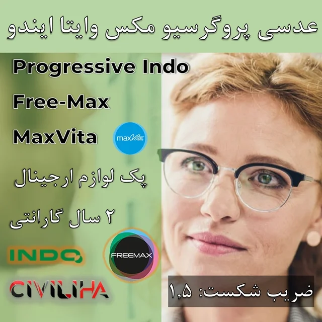 عدسی دودید پروگرسیو ایندو مکس وایتا با پوشش بلوکنترل انتخابی 1.5 Progressive Indo Free-Max MaxVita + فريم رايگان