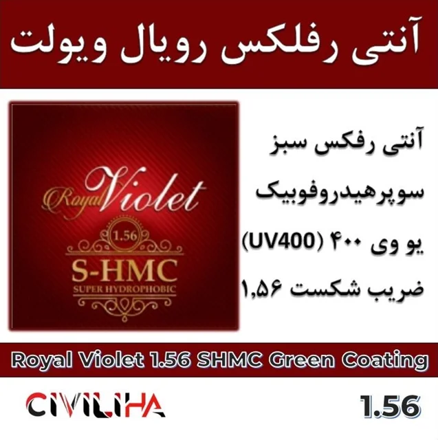 عدسی آنتی رفلکس رویال ویولت 1.56 Royal Violet Green coating UV400